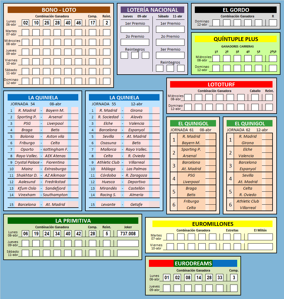 RESULTADOS SEMANA 15/2026![]() RESULTADO DE SEMANAS ANTERIORES SEMANA: