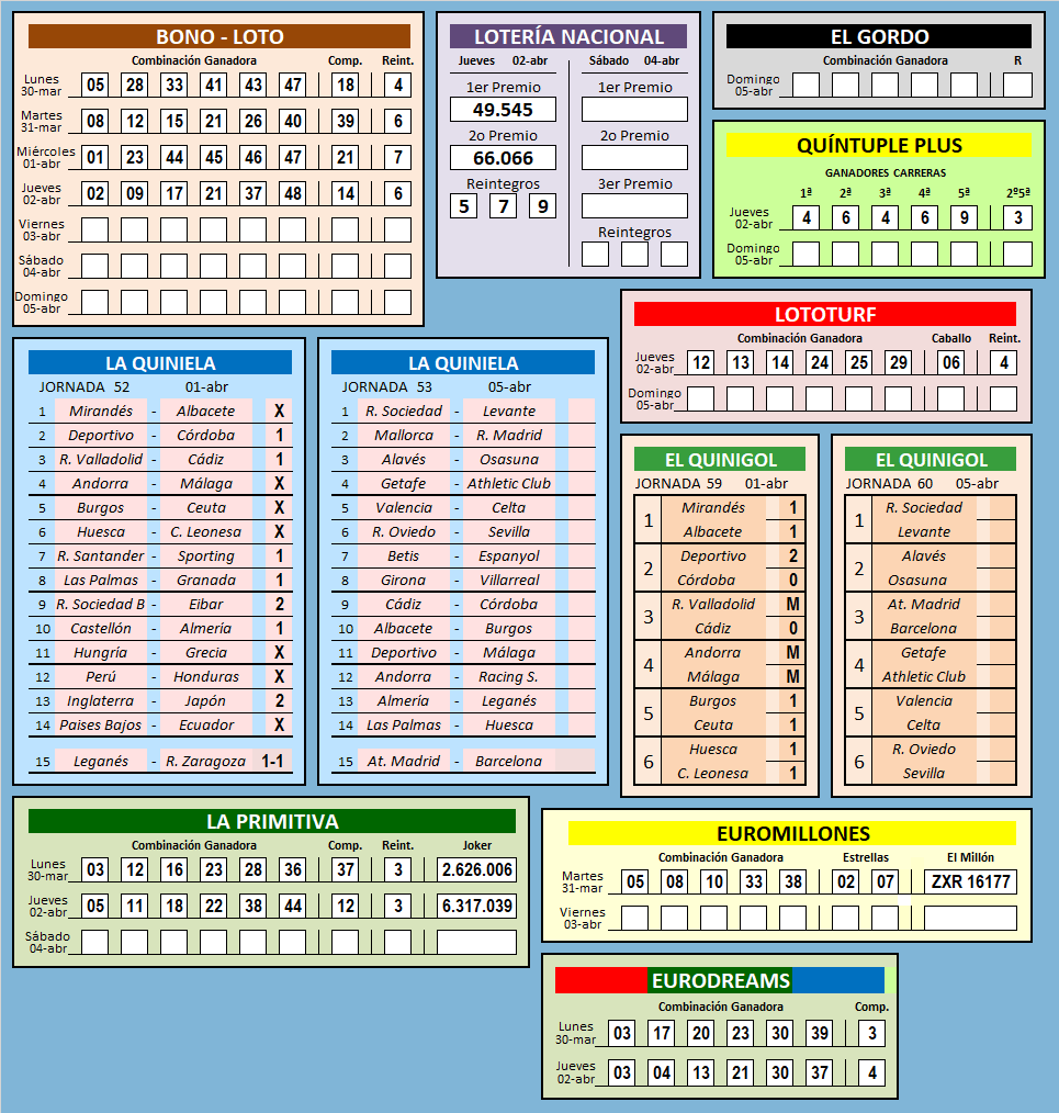 RESULTADOS SEMANA 13/2026![]() RESULTADO DE SEMANAS ANTERIORES SEMANA: