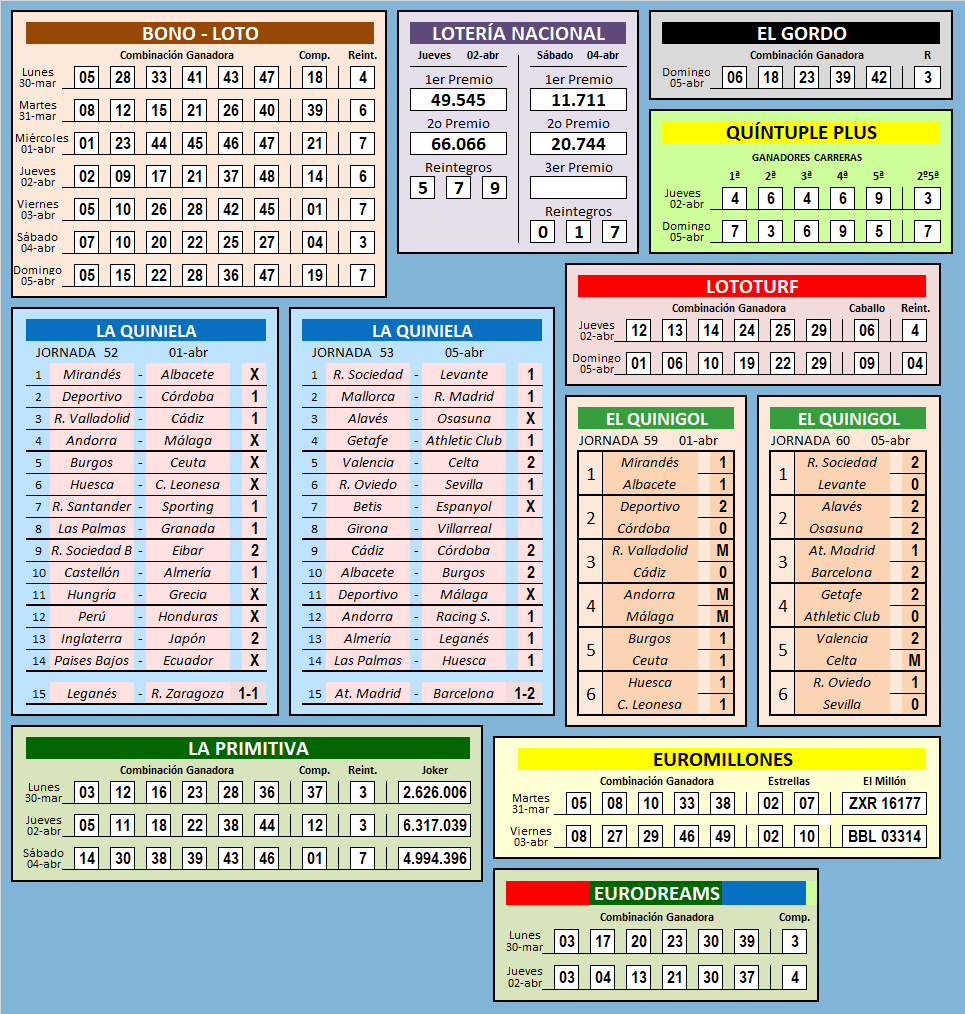 RESULTADOS SEMANA 14/2026![]() RESULTADO DE SEMANAS ANTERIORES SEMANA: