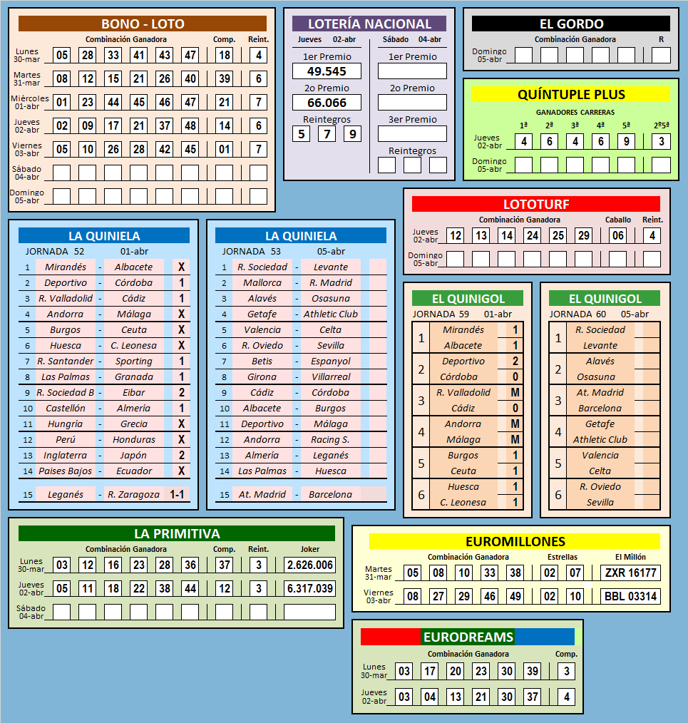 RESULTADOS SEMANA 14/2026![]() RESULTADO DE SEMANAS ANTERIORES SEMANA: